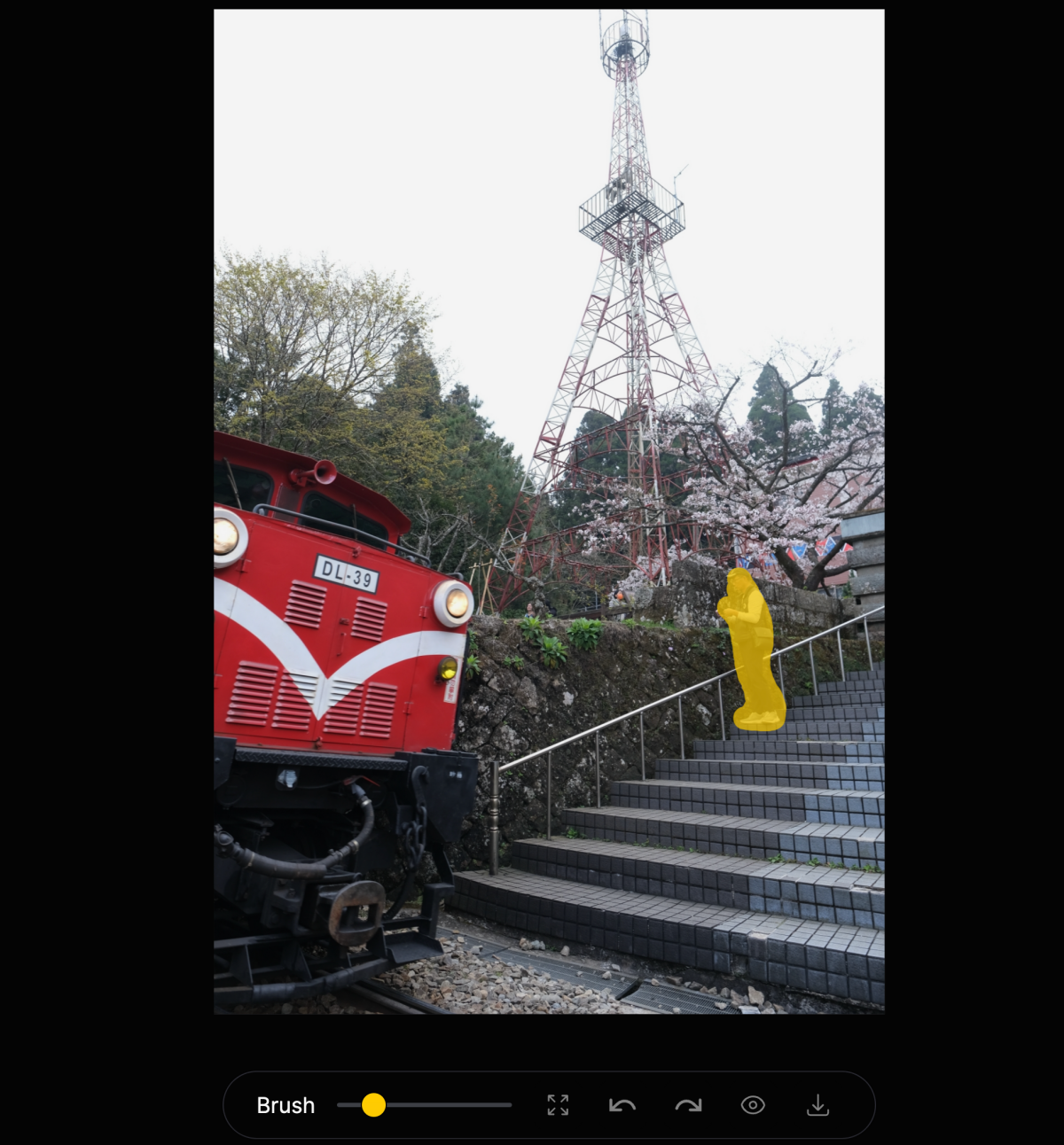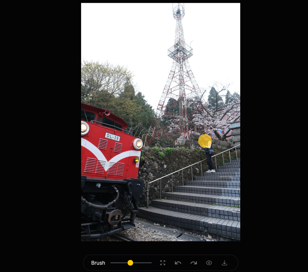 匯入照片後(直接拖曳進來),用滑鼠直接塗抹要去掉的部份,下方的 Brush 可以調整筆刷的大小。