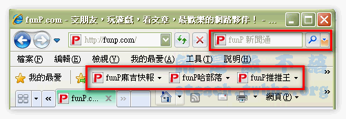 六大功能如下: 相容性檢視:介紹點我去 Inprivate:介紹點我去 加速器:介紹點我去 Web Slices:介紹點我去 SmartScreen:介紹點我去 搜尋建議:介紹點我去去哪下載新的IE8? 站長在3/20的前一週就已經昭告天下人IE8的消息,更是在3/20當天發佈了IE8.0繁體中文正式版今日開跑,去哪下載&如何隨點隨FunP?讓大家都能在第一時間內享用到IE8的不一樣和在IE8中使用貼心的Funp功能,所以如果還沒安裝的,趕緊至上面文章中上課一下哦!或者到咱們貼心的Funp也準備好了準備的連結哦:由此去 讓IE8充滿濃濃Funp味! 怎麼才是濃濃的Funp味呢?首先當然是要在工具列充滿著Funp的連結,讓我們隨時想到手指一動馬上連到Funp來每天也不忘關心國家大事、娛樂影視、體壇風雲,用貼心的新聞通搜尋,想看什麼新聞通通有。