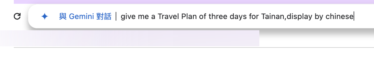 接下來就可以在 | 後面輸入指令,這時你一定會好奇的問,Gemini 不是支援中文嗎?為什麼要用英文問他,沒有為什麼,因為我英文還不錯(誤),不是啦,其實是目前透過網址列直接給指令的話,中文會變亂碼,不過也沒差,你就打成中文也沒關係,因為指令下了之後,也是要跳到 Gemini 的頁面。