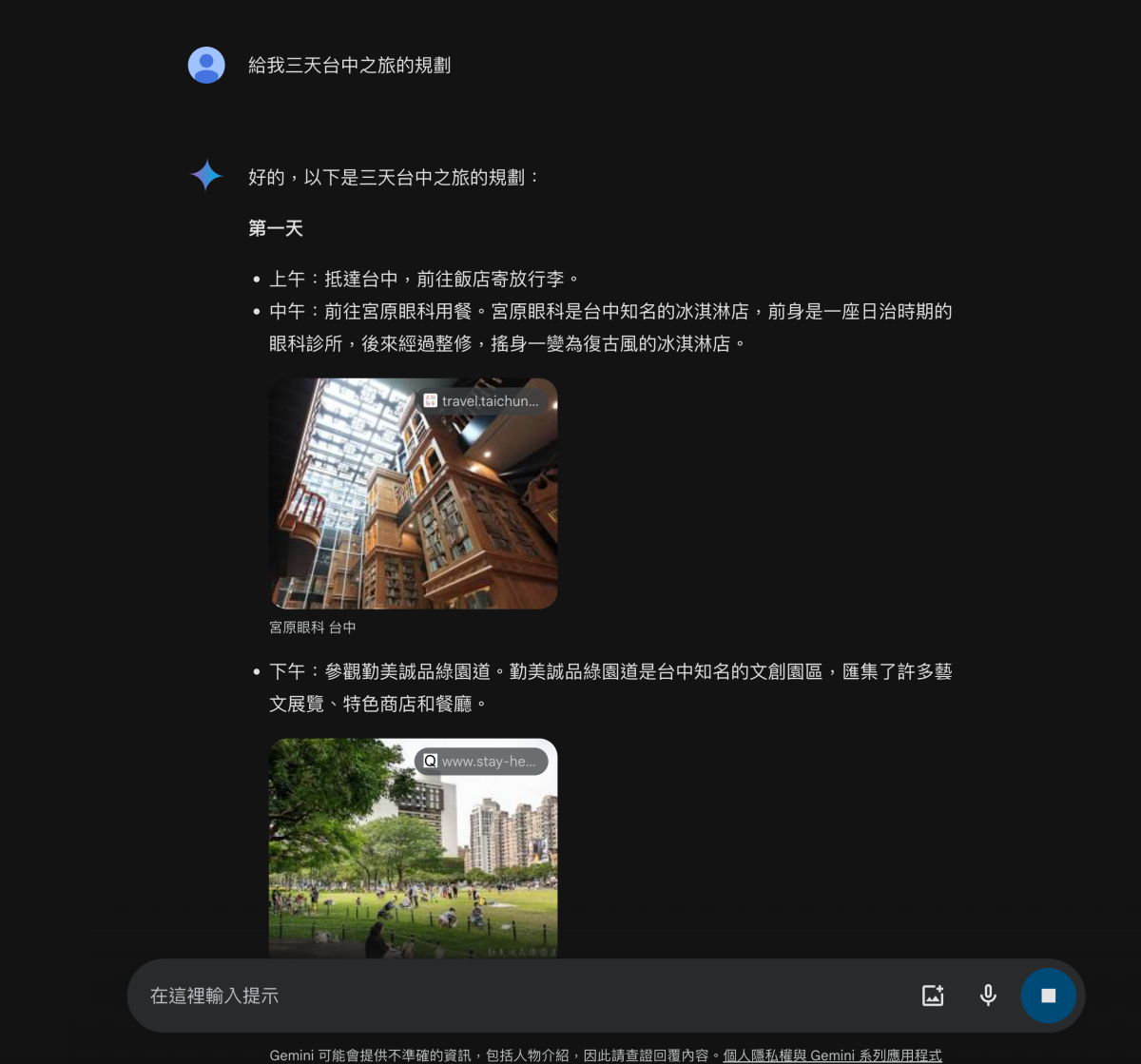 或是你重新給其它指令都好,所以如果你想要用中文問,又想要快速呼叫的話,其實只要 @ 後叫出來隨便問什麼,就會跳出 Gemini 網頁,再問想要問的問題就好,當做是快捷鍵的一種吧。