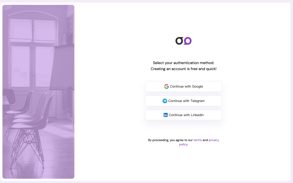 登入方式有三種,透過 Google、Telegram 或是 Linkedln。