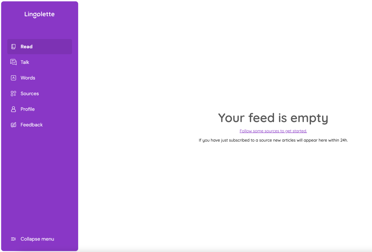 第一次使用在 Read 這裡會是空的,如果想要練習內容,要先在左邊的「Sources」增加。