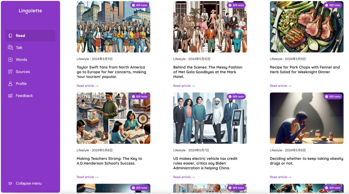 訂閱好內容回到 Read 就會有很多內容可以使用,隨便選一個點進去看看。