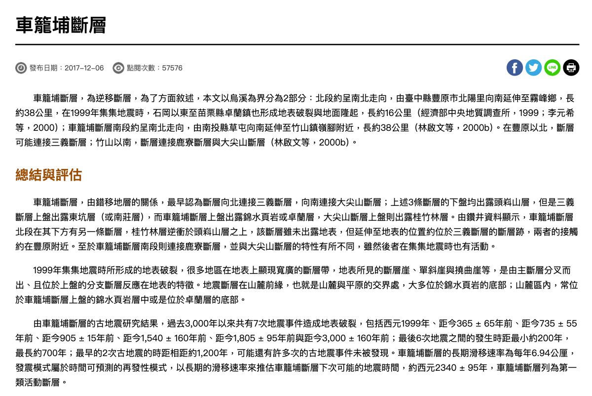 如果你想要了解每個斷層的狀況,也可以到另一個資訊網站查看,裡面有所有斷層的介紹與評估。