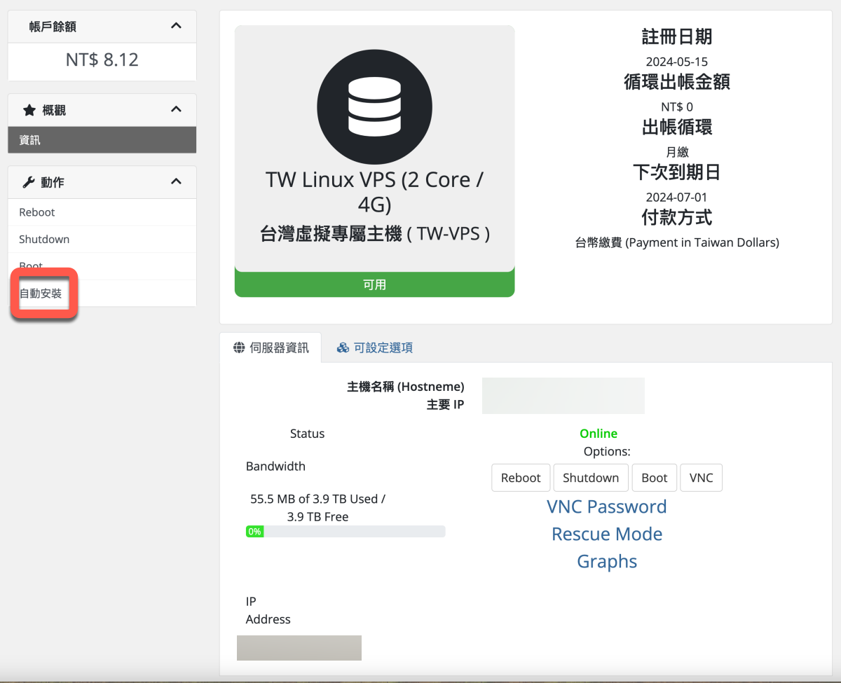 在 VPS 服務中,左邊可以看到有個「自動安裝」,點進去。