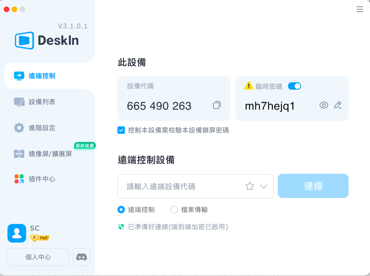 這邊來簡單分享一下 Deskln 的使用介面跟一些重點功能,首先介面的部份,我覺得蠻好用的,不論是電腦版或手機版都設計的很好,密碼有區分固定密碼、臨時密碼,或者可以用允許的方式連線,安全性是沒有問題的。