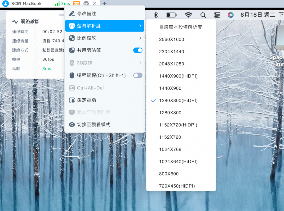 如果設備是能調整解析度的情況,在上方右鍵就能直接選擇,自定義解析度要多少,這功能也只有 Deskln 支援。
