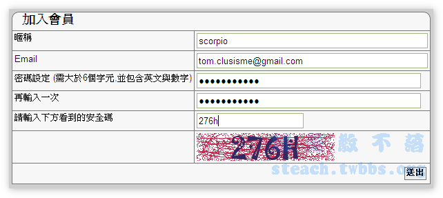 填入資料按下送出,密碼自己設定可是要記得呀!!