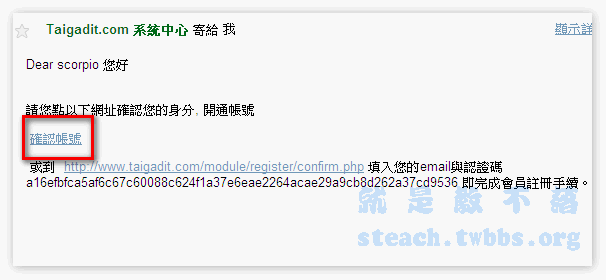 去信箱收認證信吧!