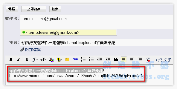 在到你的信箱貼上剛複製的序號(其實不就是推薦網址…)再將這寄給你的好友們~
