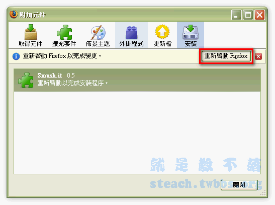 重新啟動Firefox