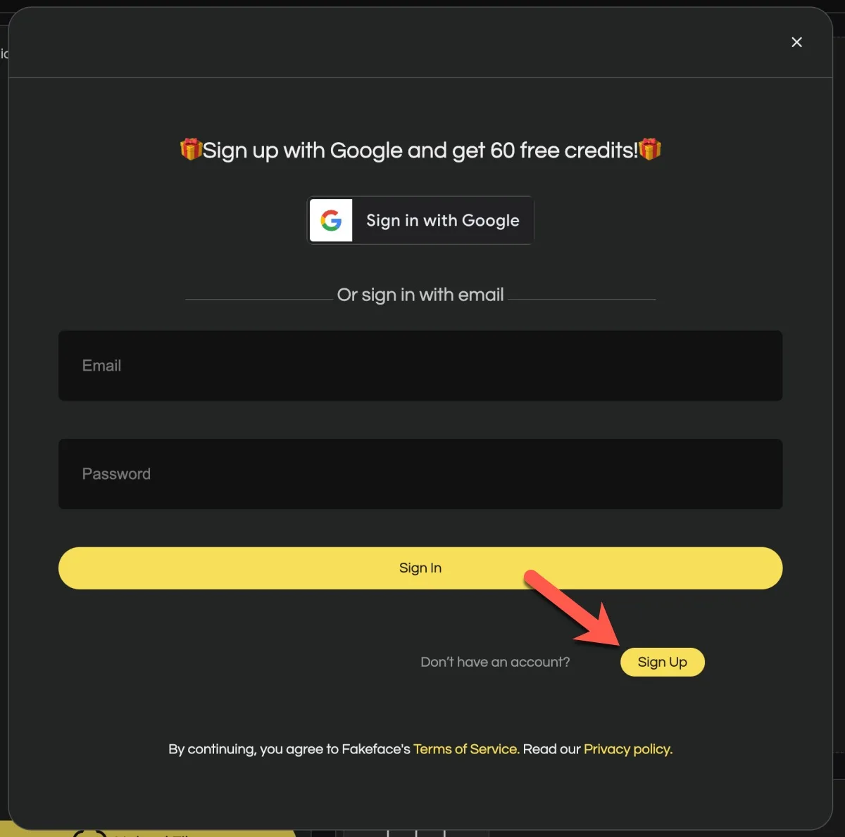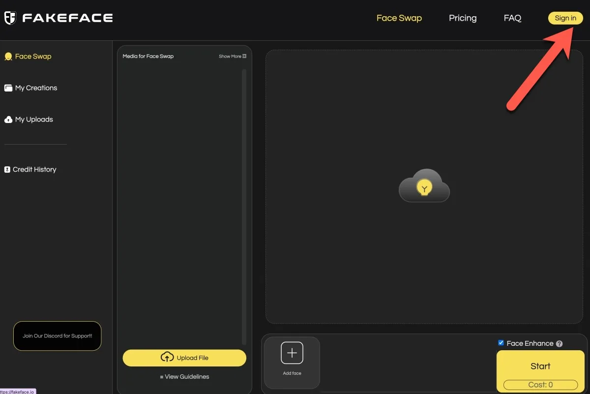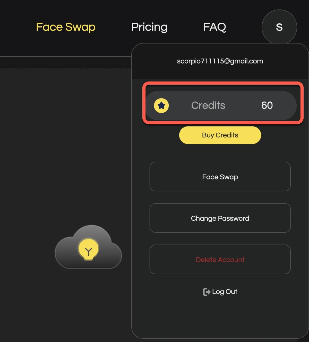首先,這個服務並不是免費的,不過只要註冊就有 60 點數可以用,可以使用一分鐘的影片或是 30 張照片,以試用來說也夠用了,點擊 Free FaceSwap 開始。