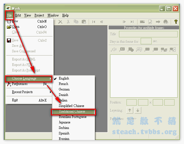 《File→Choose Language→Traditional Chinese》,選擇完後將程式重開即變成繁中語系介面囉!