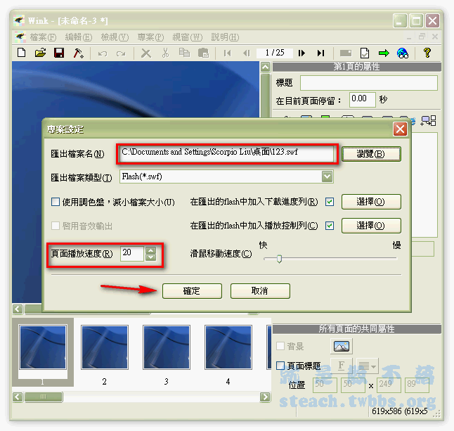 三、將檔案輸出為Flash動畫: