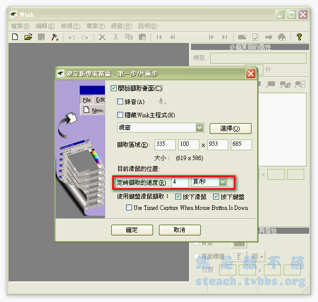 選擇完範圍後,有一選項決定你的截取畫面速度,原則上依預設每秒4頁就差不多囉