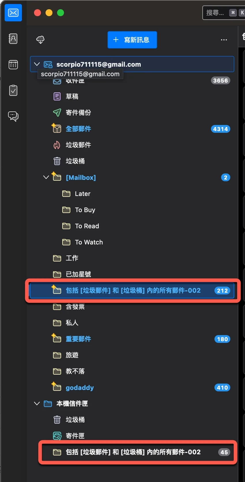 這樣就移動成功,接下來會將移動過去的信件透過 IMAP 協定同步到你的 Gmail 帳號內,放著讓他慢慢同步就好。