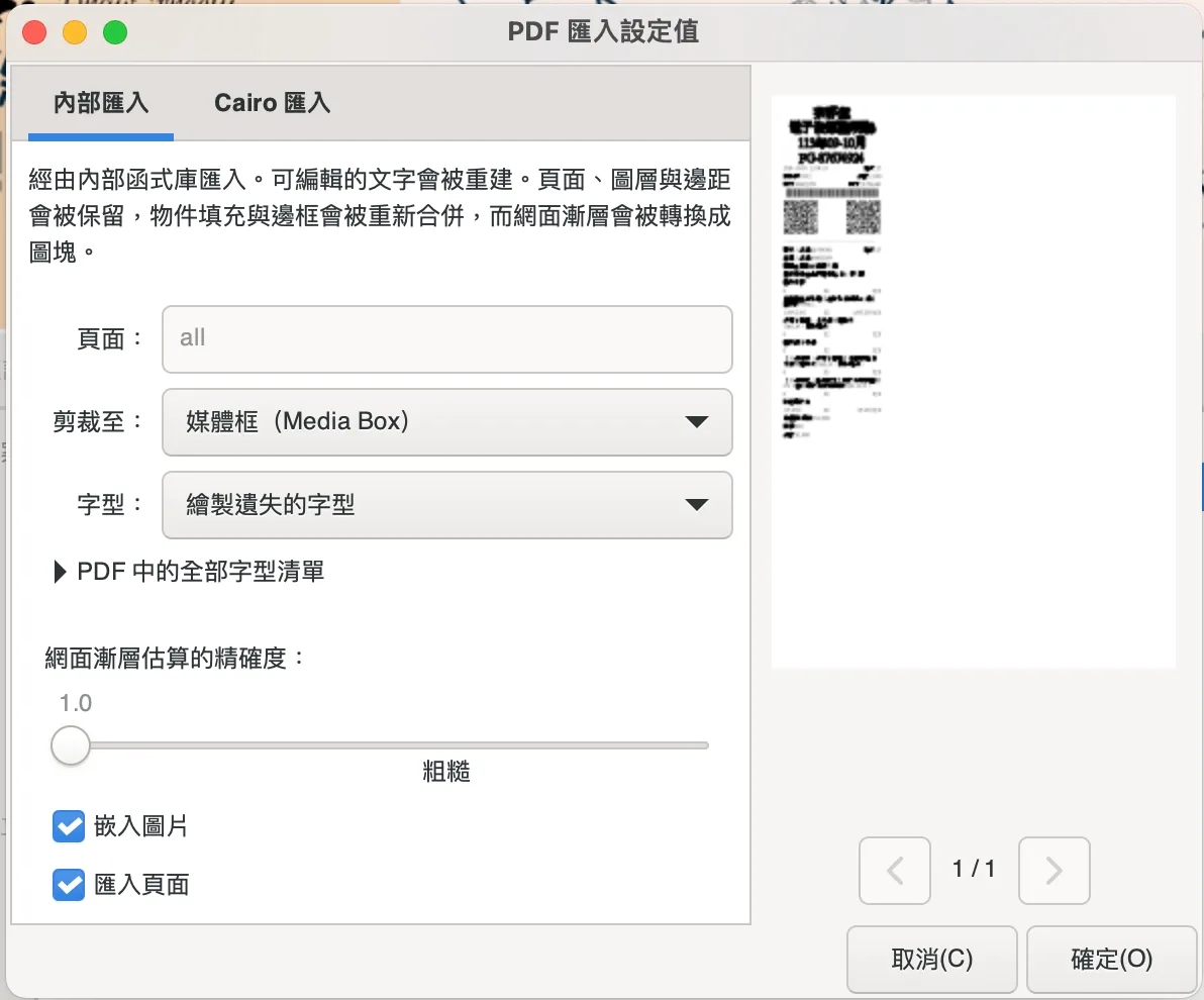 匯入時,如果沒有裡面的字型,它會以繪製的方式產生。