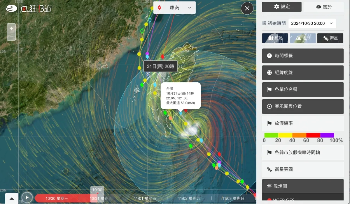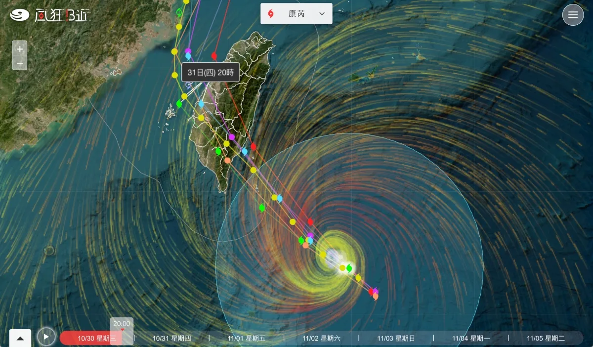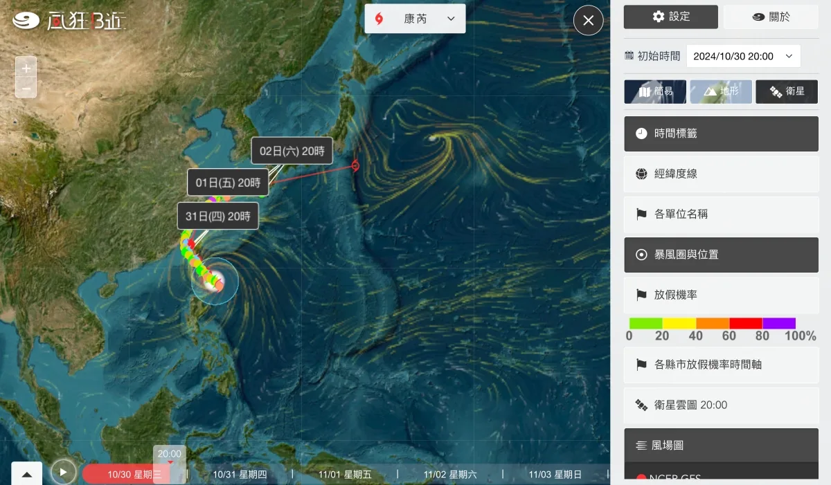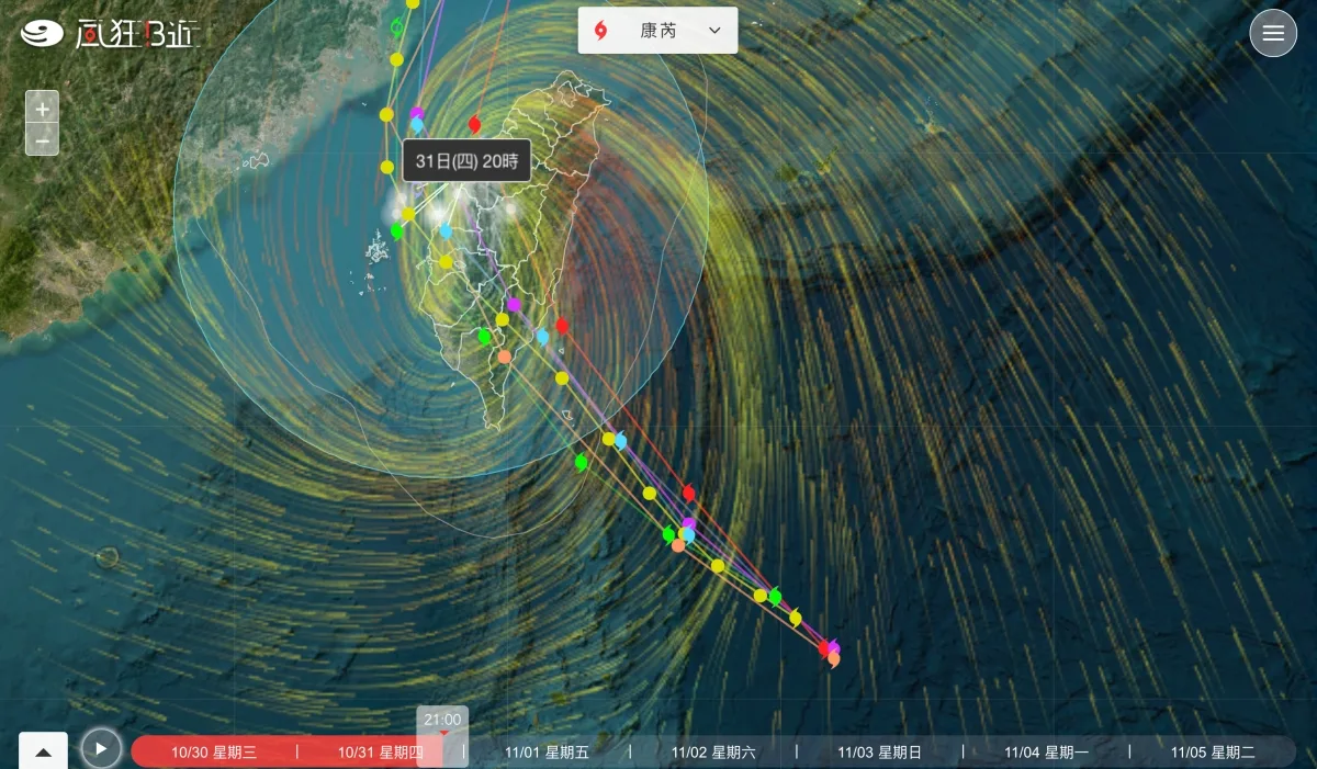 近期又來一個康芮颱風,大家除了等著颱風假之外,很多容易變災區的人更關心颱風的動態,不過說真的,氣象局的網站真的做的不怎麼樣,萬年不更新,明明網路上都有大把的好範本給你參考怎麼改更好看,用的更直覺就是不改,今天來分享一個線上服務叫做風狂B近,用來觀看颱風動態更加直覺,還有各縣市放假機率預測,另外除了台灣的預測路徑之外,也有各國預測的路徑可以參考,如果你總是看不懂颱風動態,來試看看吧,保證直覺好用。