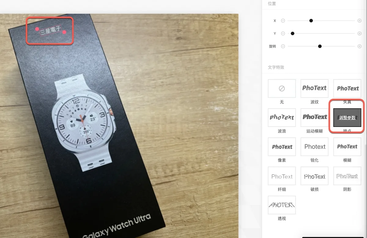 比如像這文字直接改上去你可能會覺得像是硬改的,有個功能叫文字特效,可以幫文字加點效果,就能看起來更逼真。