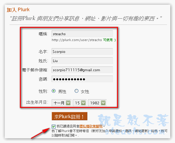 噗浪申請:http://www.plurk.com/Users/showRegister