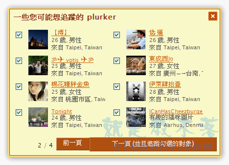 噗浪客(Plurker)問你是否要追蹤他們的發言,
