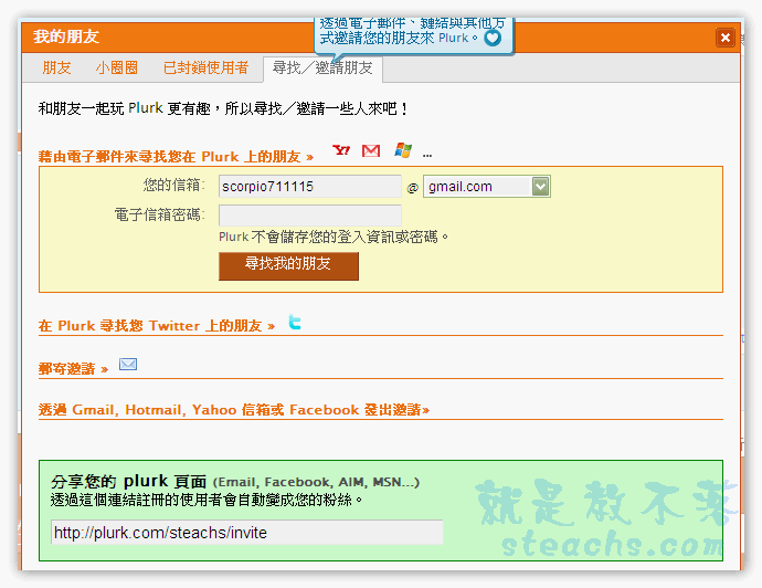 丫湯的噗浪: http://plurk.com/steachs/invite