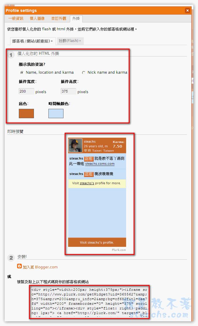 最後一項是外掛,其實也就是常常在別人的網站中看到的噗介面啦,如果你想要安插
