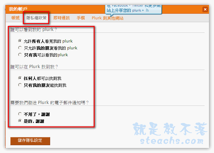 如果你想要自己噗自己開心或是只噗給朋友的話,都可以在這裡橋一下..
