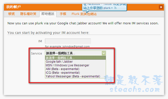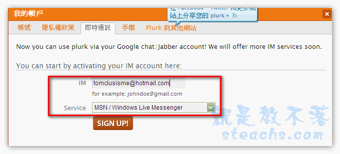 這應該也算是噗浪的特色之一,可以透過Gtalk、MSN、Yahoo Messenger等等的