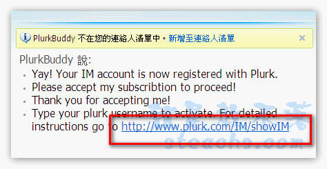 〝新增至連絡人清單〞,將PlurkBubby加入,你會看到PlurkBubby在線