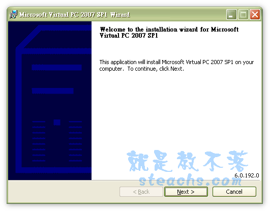 軟體版本:Microsoft Virtual PC 2007 sp1 6.0.192