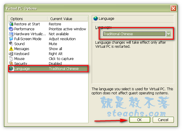Language中選擇Traditional Chinese再按下OK,再將程式重新開啟就變中文囉。