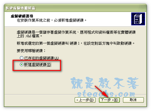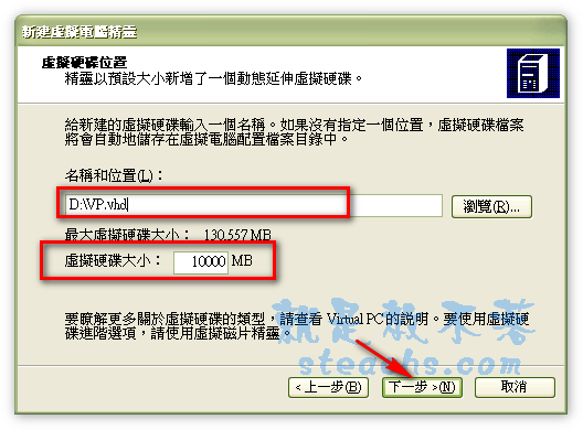 選擇虛擬硬碟儲存的位置,如不另外指定則會自動儲存在先前指定好的位置,