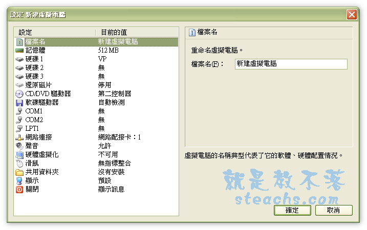 這邊可以指定要儲存虛擬裝置的資料夾以及名稱