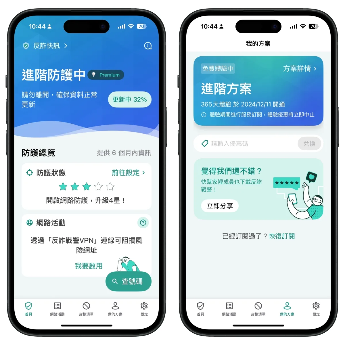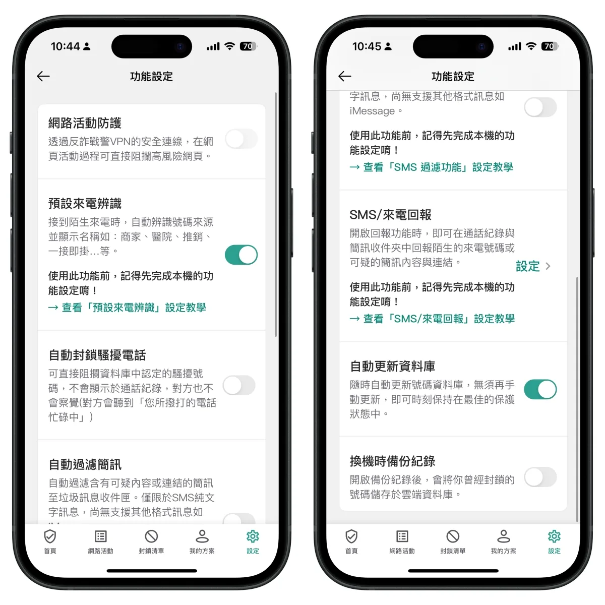 除了來電辨識外,還有網路活動防護,可以幫你阻擋掉高風險的網頁,避免被詐騙,除了電話外,還多了這功能真的不錯。