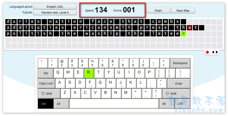 英文速度若達約每分鐘50字以上就算是熟練鍵盤了,接下來就可以去練練其它中文相關的