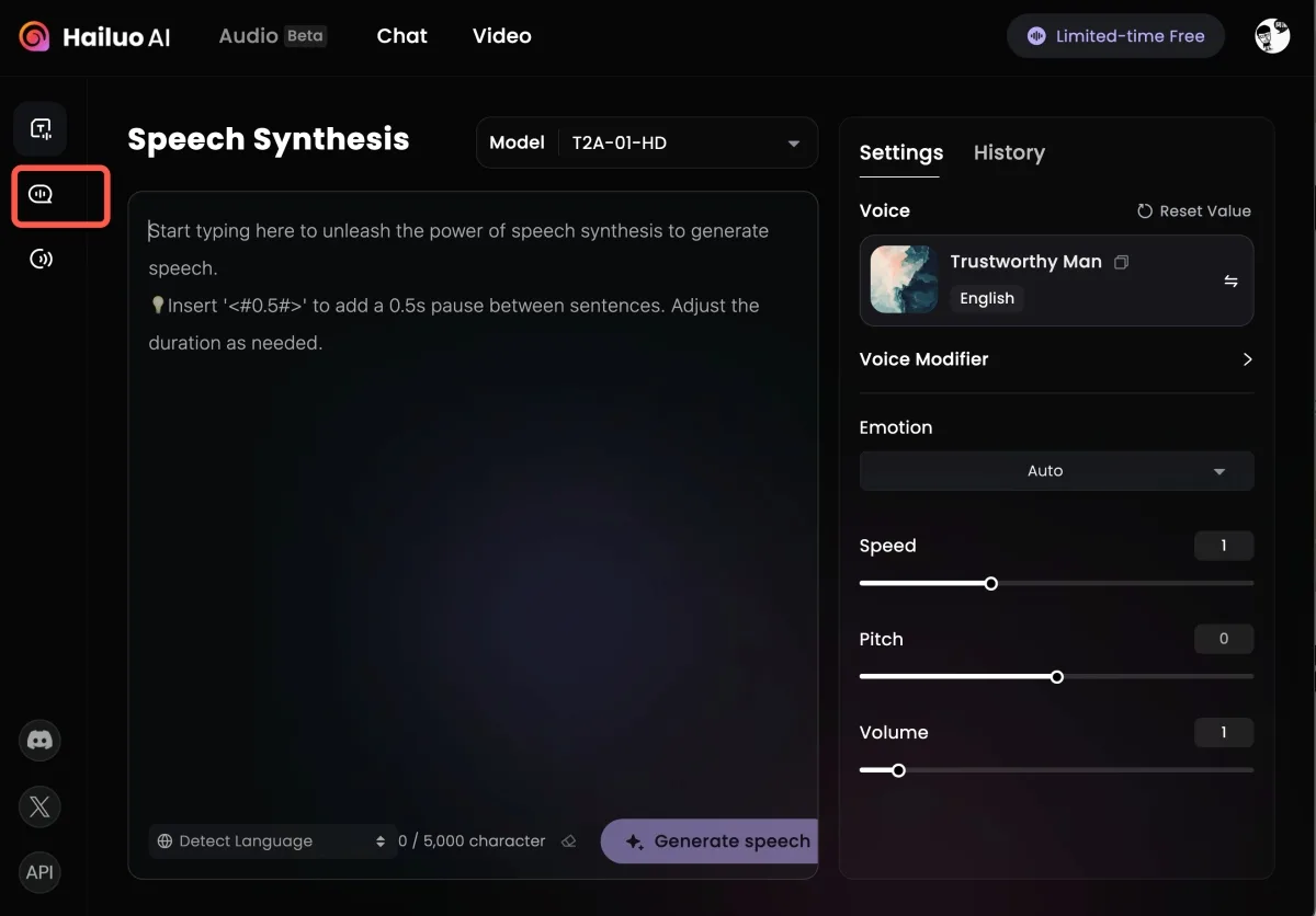網站:https://www.hailuo.ai/audio