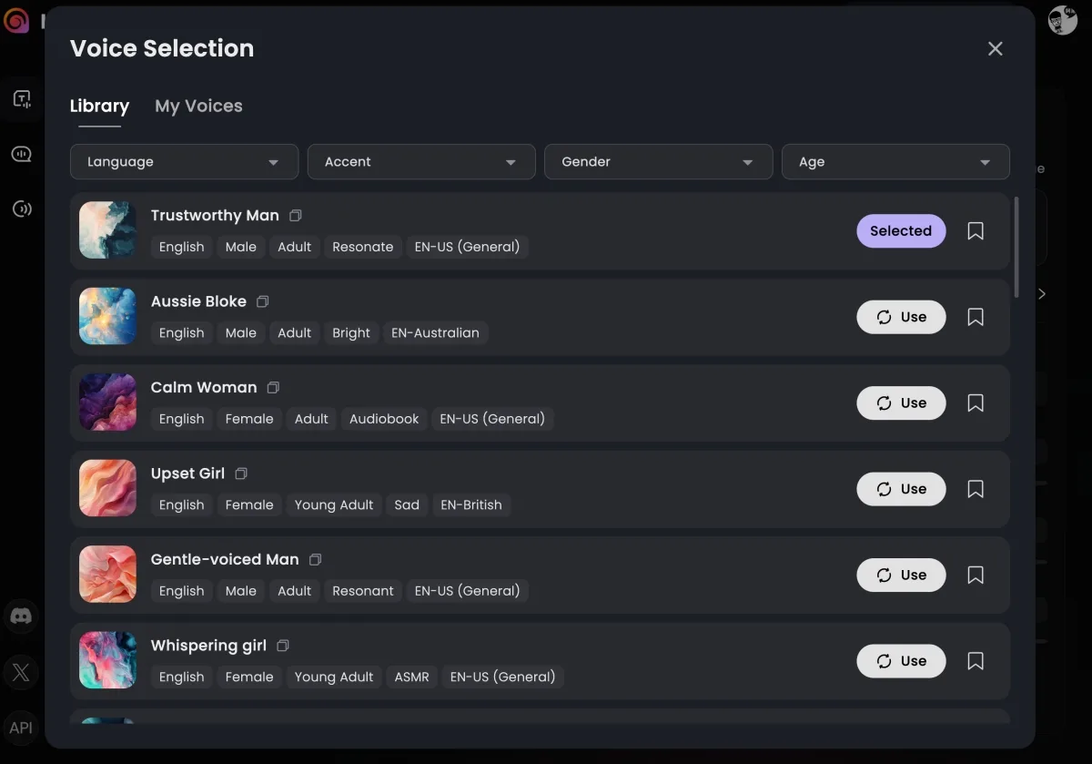預設畫面長這樣,你可以直接選擇你想要使用的聲音,或是自己創造一個。