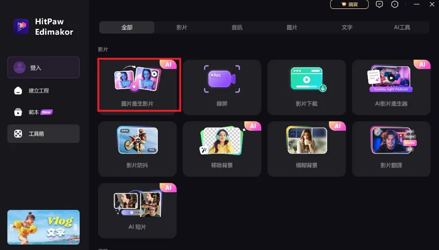 1.首先,將 Hitpaw Edimakor 下載與安裝到電腦上,點擊 “工具箱” > “圖片轉影片”