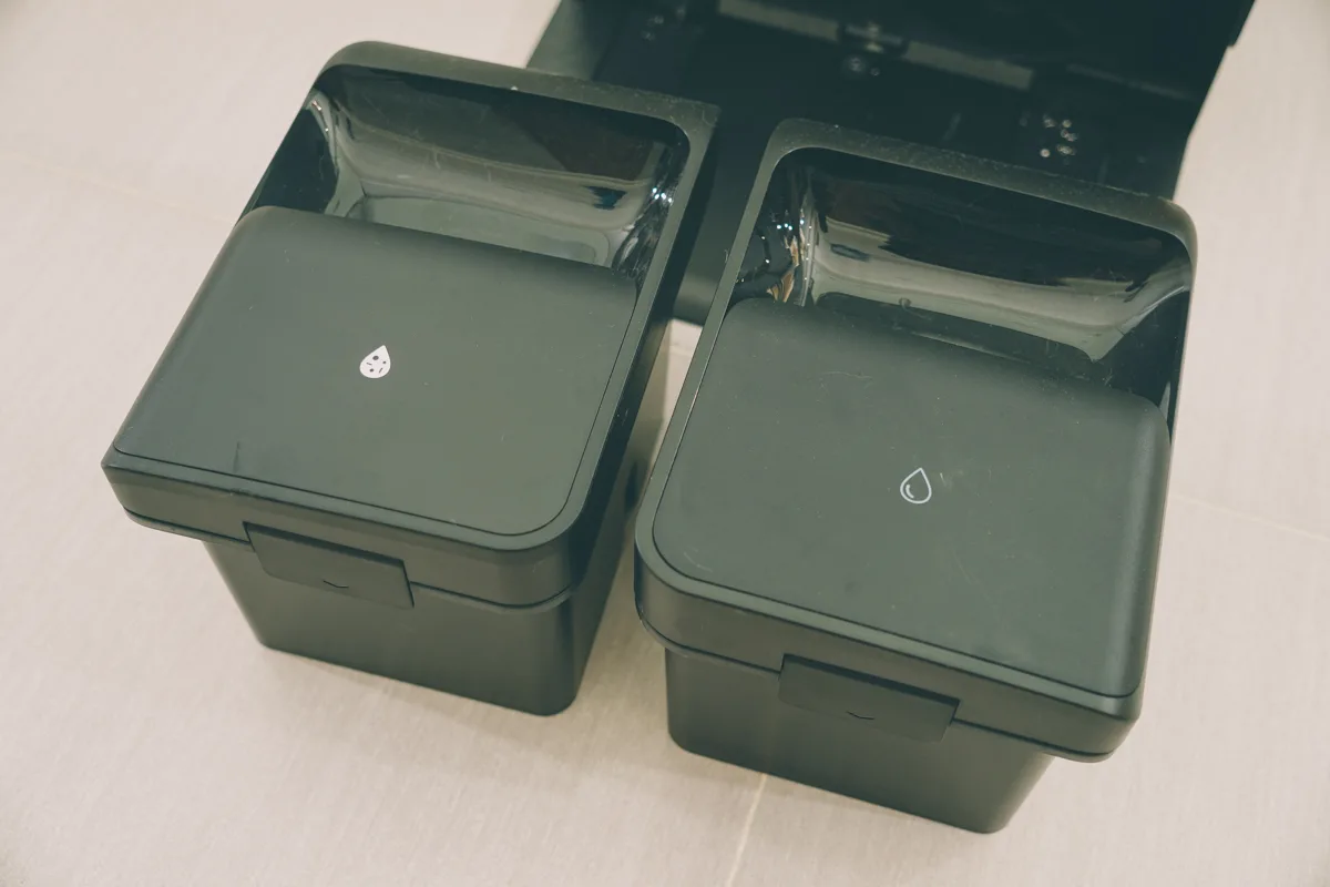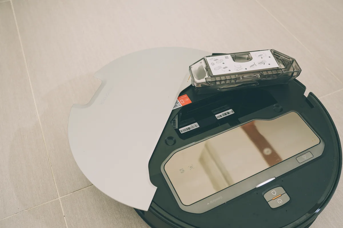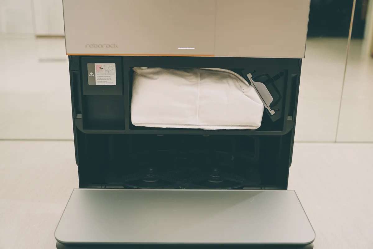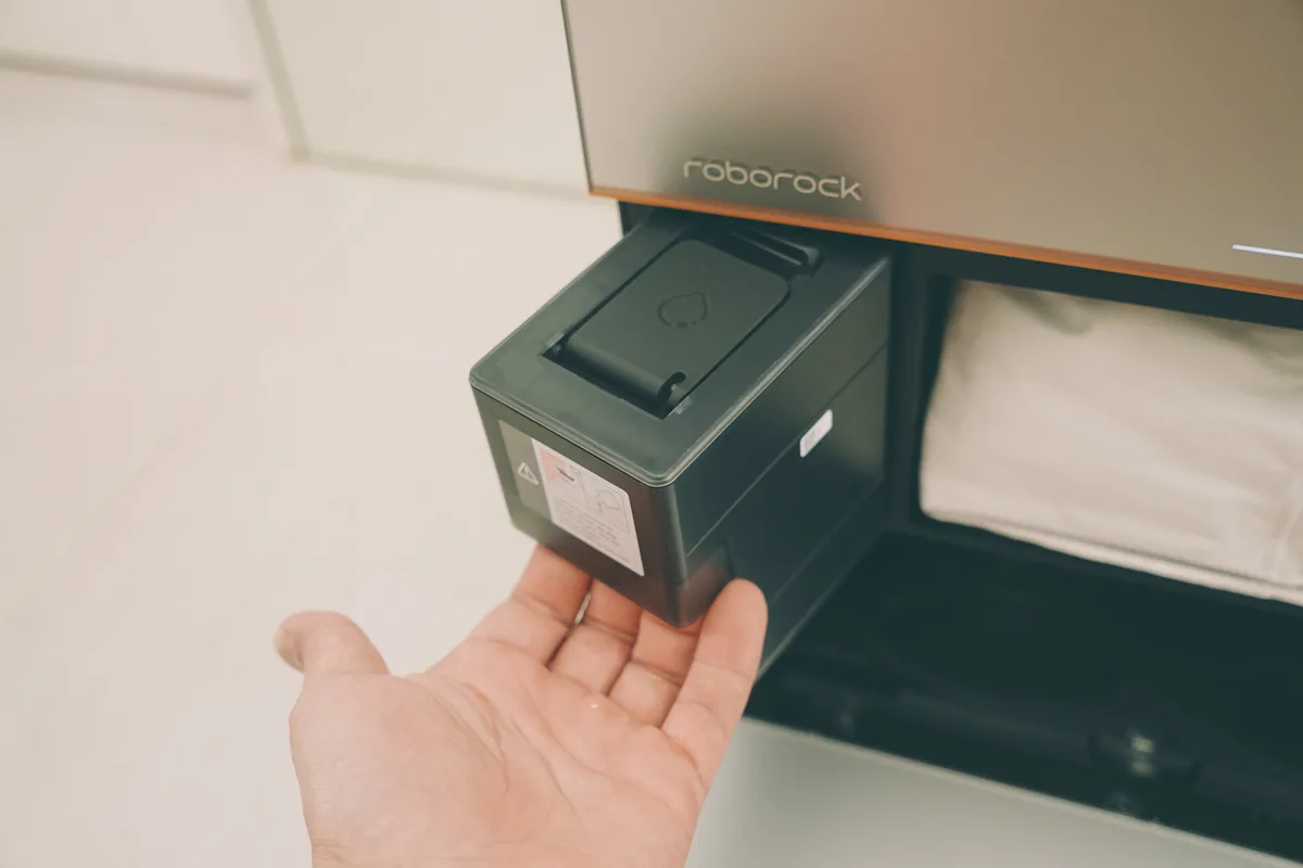 中間包括自動地板清潔劑添加盒以及拋棄式集塵袋,不過我自己在想,能不能在集塵盒這裡做一個可重覆洗的集塵盒設計,應該就更加環保了。