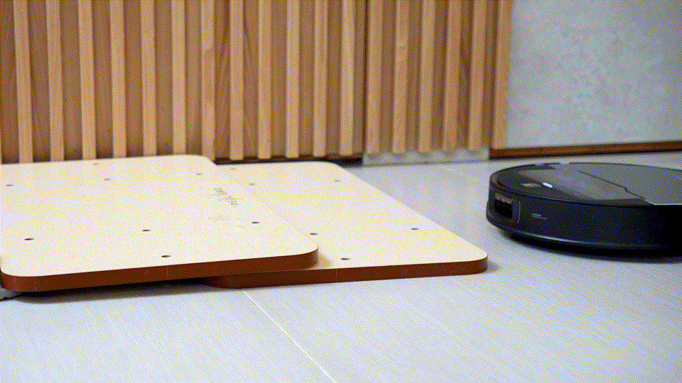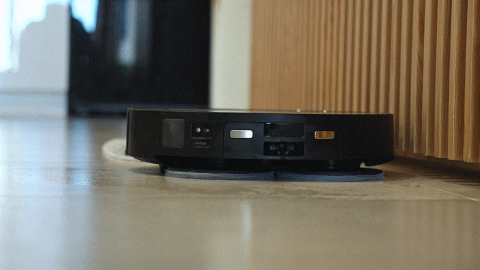像這樣,偵測到地毯時拖布會自動抬升收起,就不會弄濕地毯了。