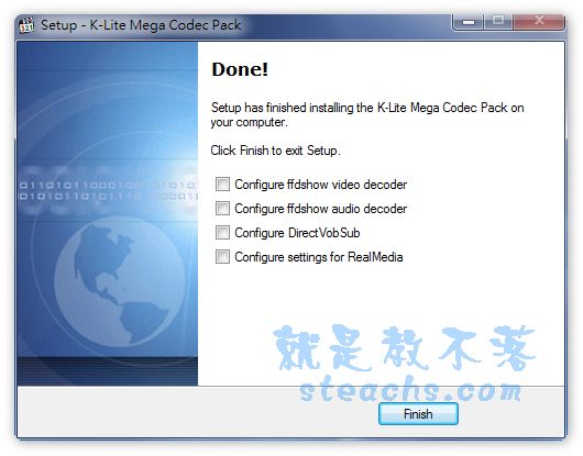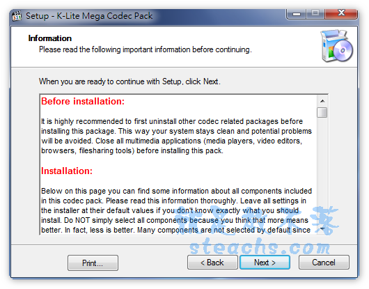 了這一套可以省去安裝一大堆播放軟體,不過自從微軟釋出Windows 7後,很多人安裝了之後K-Lite並沒有支援Win 7,很多安裝Windows 7 RC版的人就改安裝Windows 7 Codecs,不過K-Lite在5/19更新到了4.8.5之後連Windows 7都支援囉,用了很多套影音解碼軟體,丫湯還是最喜歡用K-Lite,如果你也是K-Lite的愛用者,也快點來更新吧。