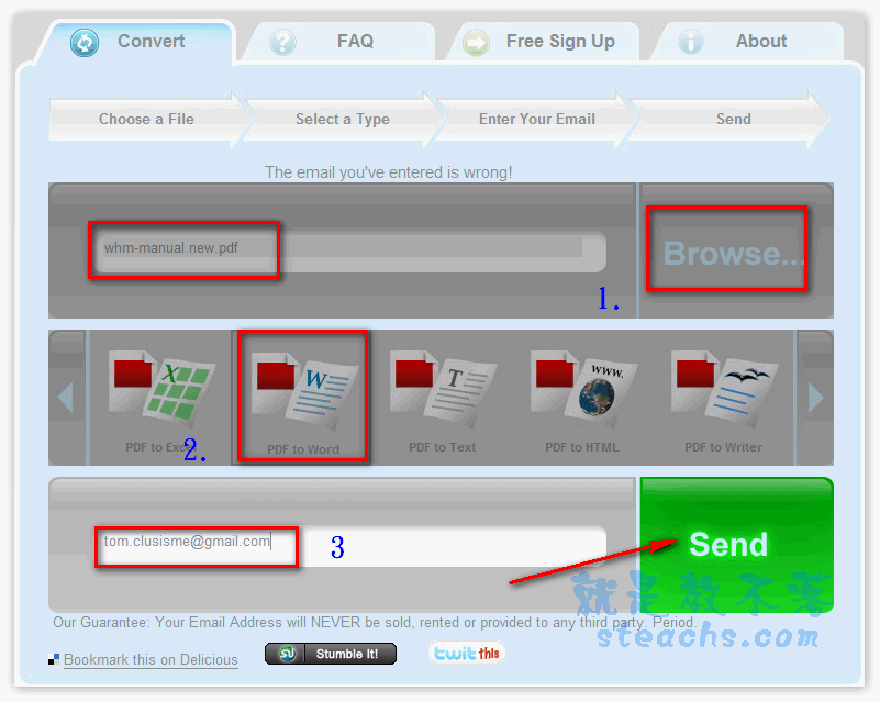 最後再輸入你要收轉換後的檔案的Email,再按下Send就會開始轉換
