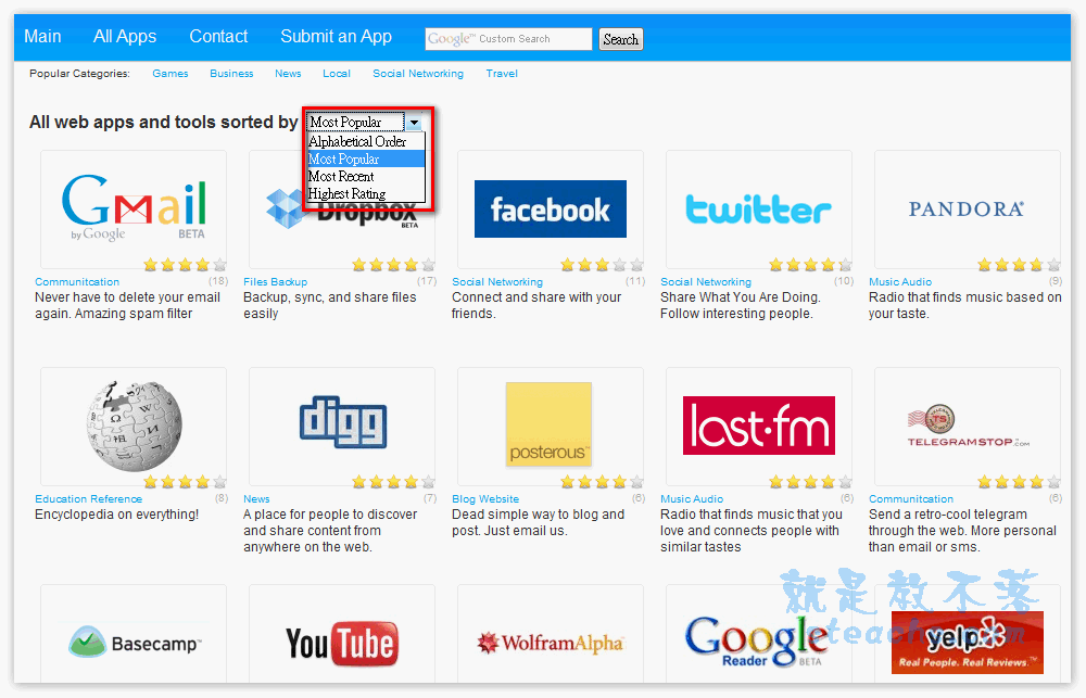網站簡介:收集大大小小的應用服務站,不只有工具,部落格,檔案類的都有這網站在排列和分類上算蠻清楚,可能是成立不久,還沒把分類的部份弄的更整齊
