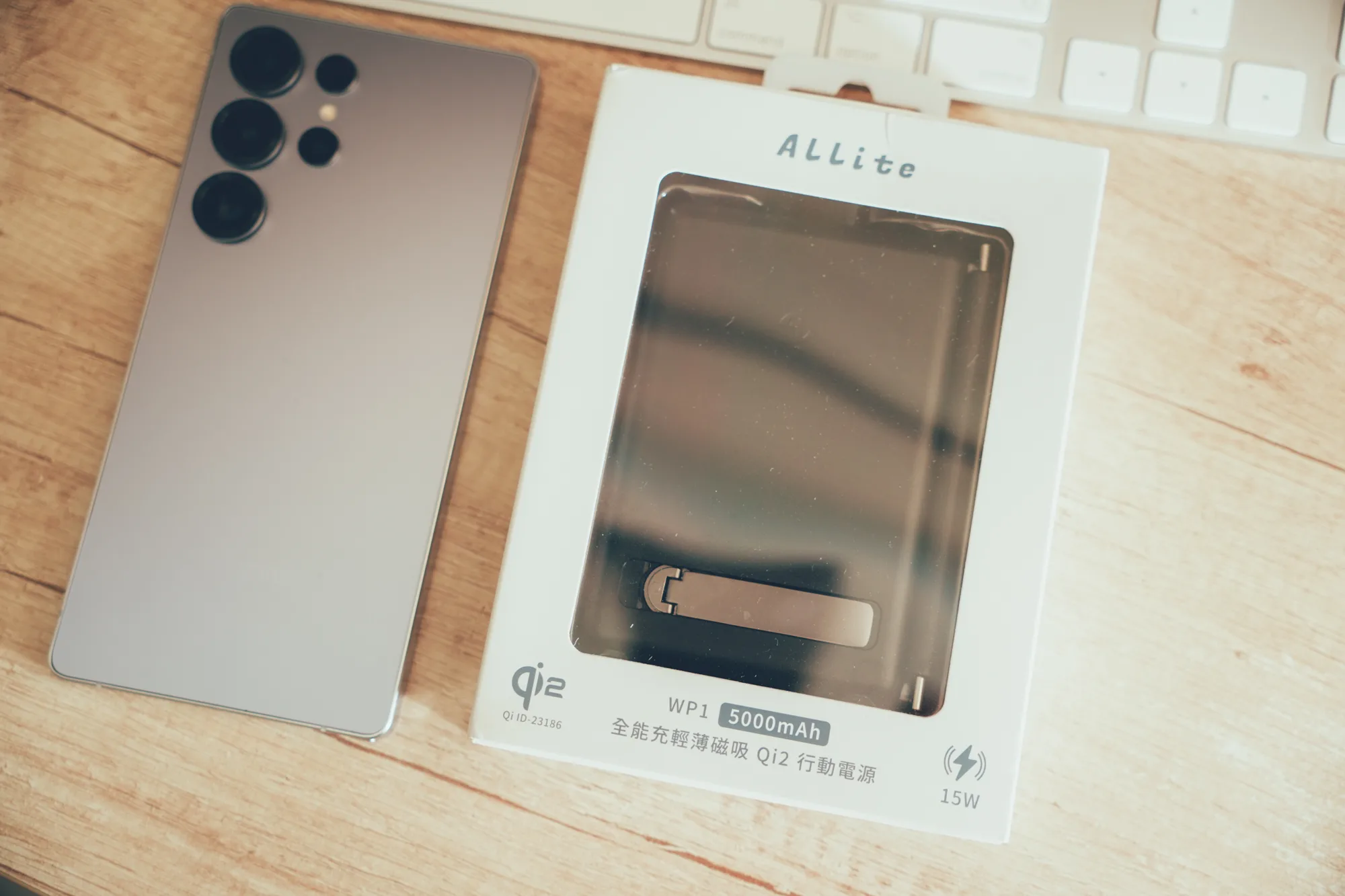這款 Allite WP1 全能充輕薄磁吸 qi2 行動電源,電量 5000 mAh,一開箱就有夠有質感!具備有 15W 無線充電,像我現在手邊這支 Galaxy S25 Ultra 就有支援 Qi2,所以我現在在挑選行動電源也都會找支援 Qi2 規格。