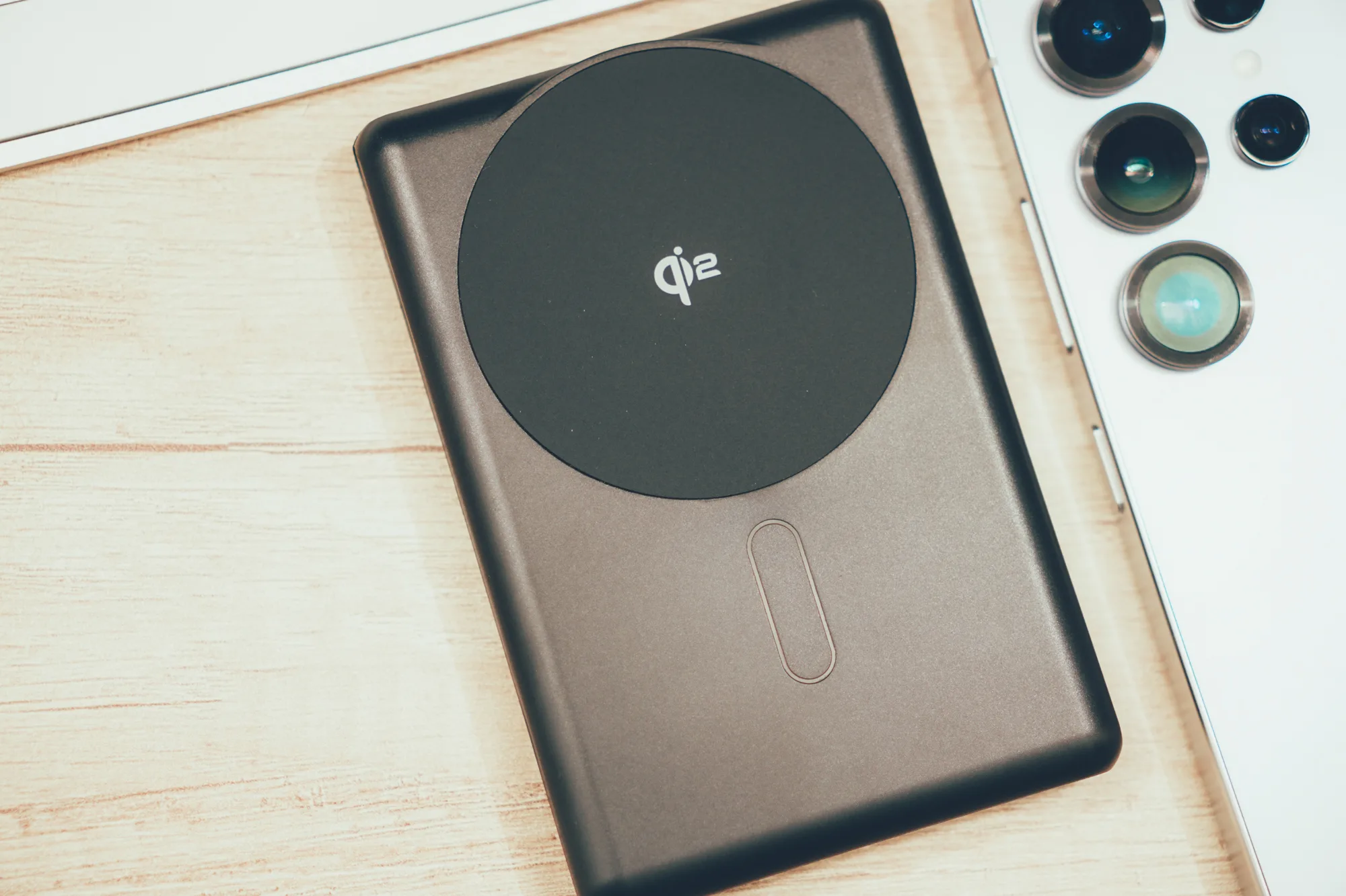 正面這顆超顯眼的 Qi2 無線充電區,吸附力穩又精準對位,搭配 MagSafe 磁吸手機殼或裸機都吸得牢!最新 Qi2 規格認證在手,無線充電穩定度直接拉滿 🚀