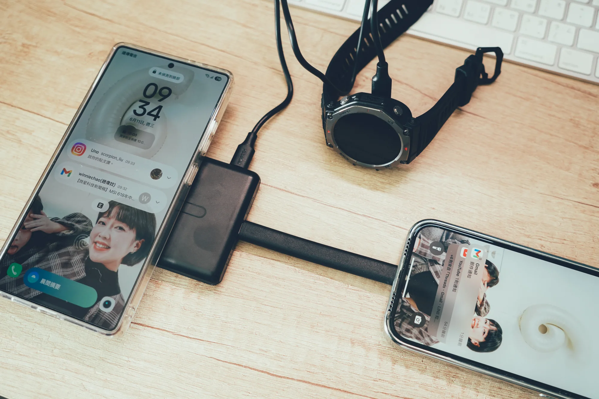 手機滑一滑、手錶快沒電、朋友手機也想借充電一下?兩個 Type-C 輸出+一個無線吸附,三個設備一起接都沒問題,不用再輪流排隊等充電,實用度真的高💡⚡