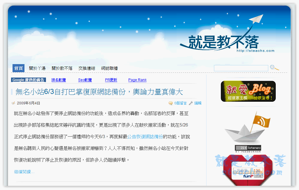 另外第二個新氣象就是最近也把網站搬家到丫湯和多位部落格站長共同經營的新主機上,