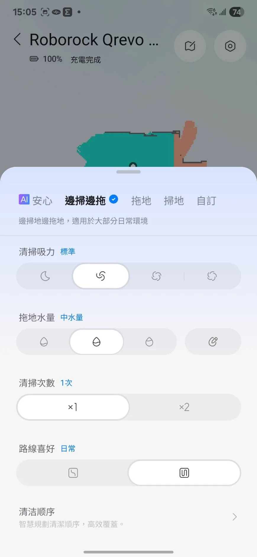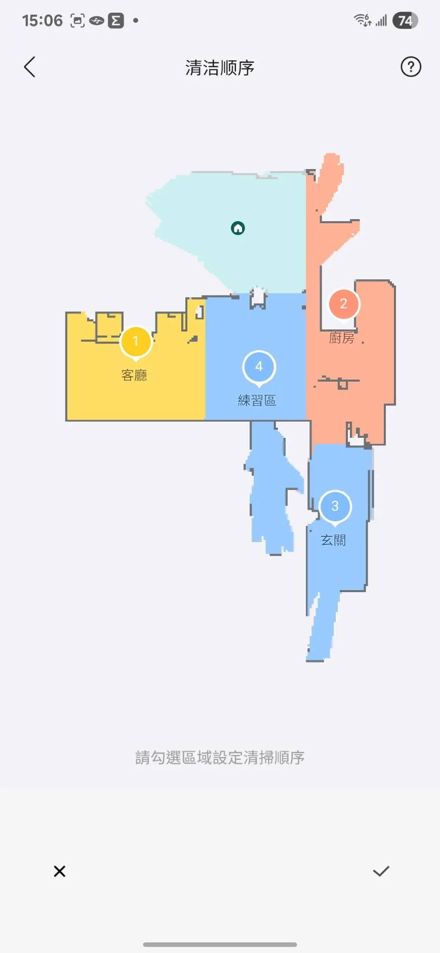 地圖編輯功能也相當實用。App 會自動生成家中的平面圖,用戶可以在地圖上標註不同房間的名稱,設定清掃順序,甚至規劃禁區。比如你可以設定讓機器人先清掃客廳,再清掃臥室,最後清掃廚房,這樣的順序安排能夠避免將廚房的油污帶到其他房間。