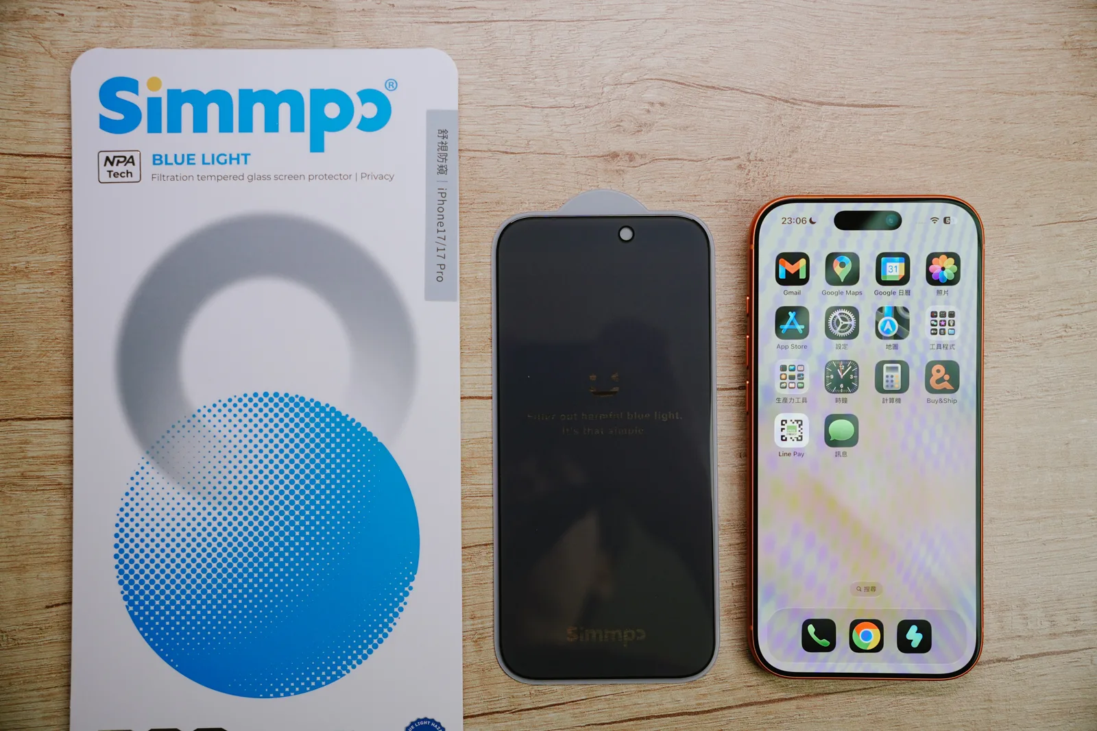 今年為了太座的 iPhone 17 Pro,預先選好要使用的保護貼是很重要的,而我們對於保護貼的需求,最重要的就是「抗藍光」,畢竟我們一個已年過 40,一個將近 40,對於眼睛的保護是很講究的,今年我們一樣用上了 Simmpo 的抗藍光護眼保護貼,只不過沒想到今年的 S-90 系列居然又大幅的突破去年的技術,獲得了德國萊因 90%BLR 的認證,真的太誇張,給大家看一下,90%BLR 是可以過濾 435-440mm 的高能量有害藍光 90%,一般的有害藍光阻擋率更是高達 50%,色溫差也小於 500K,等於是幾乎沒色差,跟大家分享一下,一般的抗藍光保護貼的阻擋率,一般最多就是看到 30~35% 左右,你就知道 Simmpo 這個 >50% 有多強了。